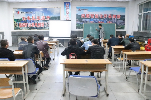 在汾西矿业集团贺西煤矿“超强矿山机电创新工作室”,授课讲师王强强正在认真为职工讲解PPT,好学的职工们在认真听讲记笔记,不时会有学员提问讨论,这里环境优美,设施齐全,学习氛围浓厚,大家如饥似渴的在学习什么呢?原来是在学习维修技术。