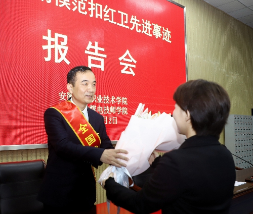 鲜花献模范——安徽淮北煤电技师学院全国劳模扣红卫事迹报告会侧记