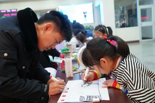 活动现场一片忙碌温馨的景象,“爸爸们”和孩子一起用画笔创作,引导孩子用简单的线条和色彩勾勒出最纯真的想法。一幅幅画打动着“爸爸们”粗糙又温柔的安全心,这群在矿山吃钢咬铁的男子汉此刻满脸的慈祥、满眼的温柔。