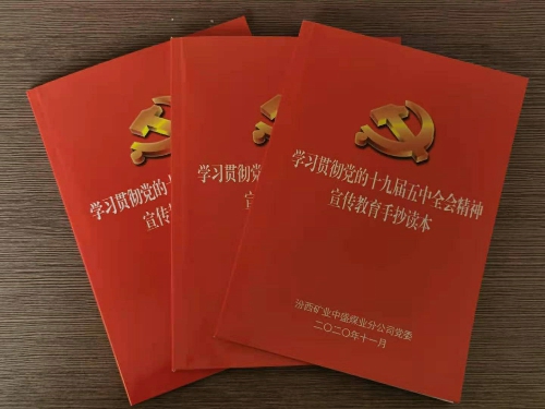为深入学习贯彻党的十九届五中全会精神,汾西矿业中盛煤业始终把理论武装摆在首要位置,不断创新政治理论学习形式,通过编印《中盛煤业党的十九届五中全会精神宣传教育手抄读本》,要求全体党员干部逐字逐句阅读,一笔一画书写,认真思考、细心体会、加深记忆,真正使政治理论学习内容入脑入心。