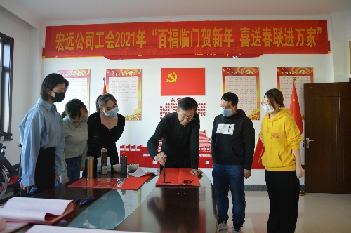 近日,宏远公司工会组织开展“百福临门贺新年,喜送春联进万家”下基层送春联活动,为广大员工送上新春的祝福。