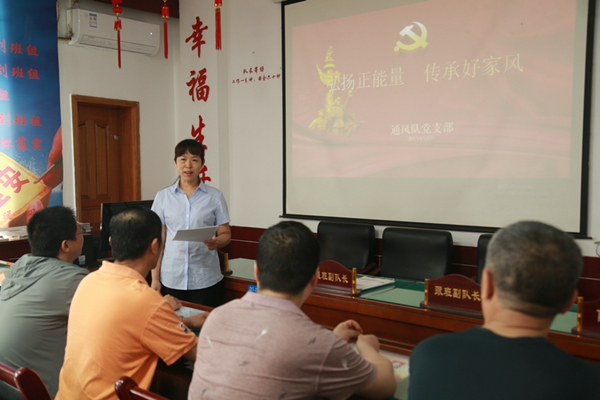 6月22日,一场让职工“懂家风”的特殊例会,在该矿通风队党支部党员大会上进行着。