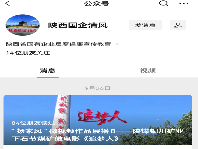 近日,陕煤集团铜川矿业公司下石节煤矿自制的微电影《追梦人》成功入选由省纪委监委驻省国资委纪检监察组主办的“德润三秦”主题“扬家风”微视频作品征集活动和陕煤集团“德润陕煤”家风建设活动,并在陕西国企清风征集专题页面及公司网站进行展播,掀起“守初心、扬家风、担使命、创业绩”新热潮。