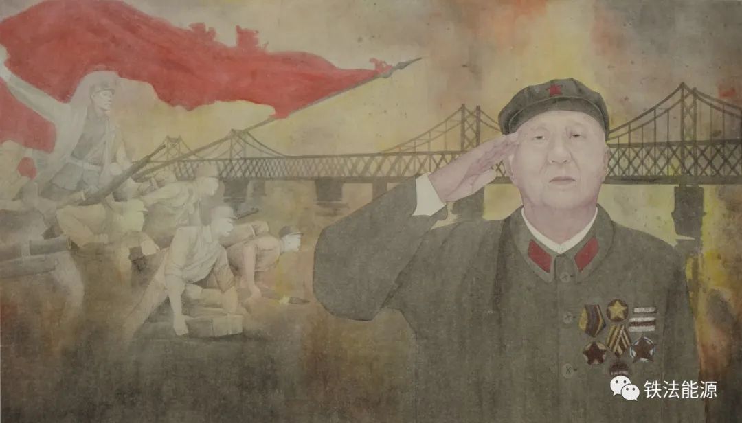 来自公司老干部管理服务中心的员工乔冠奇是辽宁省美术家协会会员,她的美术作品《魂》描绘的是抗美援朝老兵、公司离休员工金鹏令身着戎装,向党旗敬礼的动人画面。老人胸前闪闪发光的军功章记录了曾经的功勋和荣耀,以及为党和国家浴血奋战的光荣感与使命感。