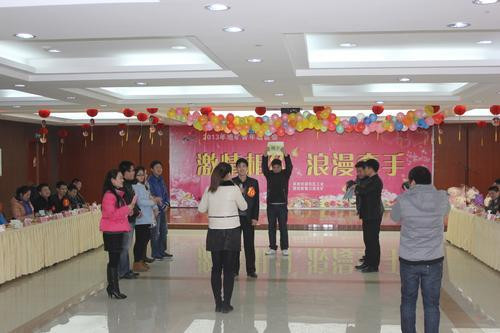 活动按非诚勿扰模式进行,男女嘉宾相继开展了初结良缘、才艺比拼、情缘男女、向心仪女生真情告白等娱乐开怀的互动节目,最后有9对男女青年现场牵线成功。通过这种地矿联谊活动,为适龄青年男女搭起了鹊桥,体现了浓浓的关爱。图为联谊活动现场。