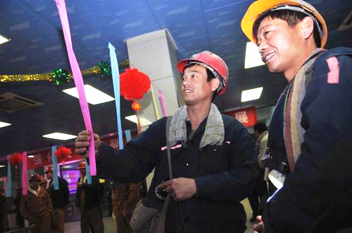 孙疃矿举办安全谜语竞猜活动 来源:淮北矿业集团孙疃矿 作者:陈更 时间:2014-01-08 【字体:小 大】 两节期间,为营造浓厚的安全生产氛围,淮北矿业集团孙疃矿开展了安全文艺演出、安全谜语竞猜、安全事故宣讲等一系列丰富多彩的安全宣传教育活动,让职工在欢声笑语和警示教育中增强安全意识。图为该矿两名即将入井的职工竞猜安全谜语。 分享到: 【打印正文】
