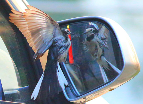 爱照反光镜的鸟儿