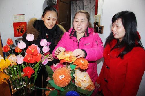 我们坚持每天下午学习交流,已经有半个多月了。王小凤说,杜英无私地把手艺传授给我们,大家都掌握了做丝网花的一些基本技巧,但还在不断提高中。除了一般的花以外,她们尝试着制作鸳鸯、黑白天鹅、洋娃娃、蝴蝶、蜻蜓等丰富的立体作品。