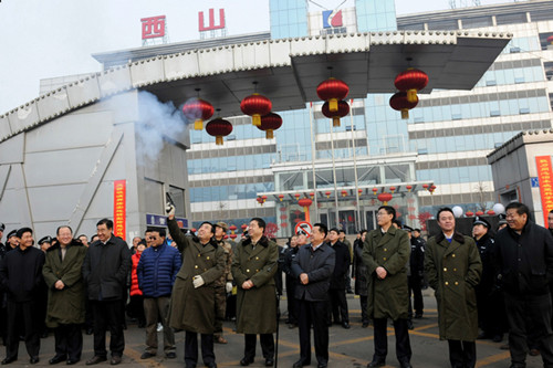 上午9点整,山西焦煤集团党委常委,西山煤电集团董事长、党委书记薛道成鸣枪发令,一颗信号弹呼啸着腾空而起,紧接着,口哨声、锣鼓声、人群的喧闹声声声入耳,在初春的阵阵寒意中,矿区热起来了,红火闹起来了