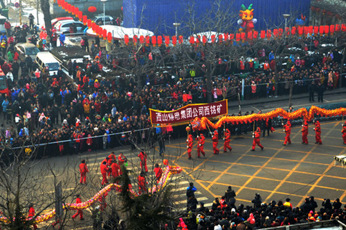 当天观看表演的西山煤电集团公司领导有薛道成、王玉宝、徐俊明、刘志安、郭文斌、栗兴仁、郭福忠、贺志宏、郦宏东、李健。他们沿着西矿街一路朝西走去,融入职工家属之中,并贴近红火表演者,与他们亲密接触,共享美好的元宵佳节。