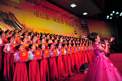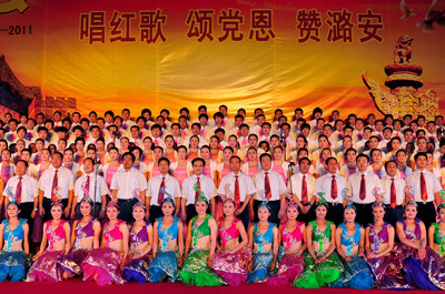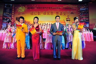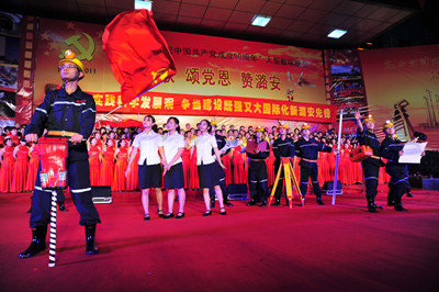今年是中国共产党建党90周年,七一节,山西潞安矿业集团党政工主要领导同万名矿工举行唱红歌、颂党恩、赞潞安大型一歌咏晚会。晚会分《东方红》、《祖国颂》、《继往开来》、《走向复兴》四个篇章。来自基层31个单位尽情讴歌中国共产党建党的丰功伟绩。《没有共产党就没有新中国》、《社会主义好》、《咱们工人有力量》等一首首歌颂党、歌颂祖国、歌颂人民的不朽歌曲,让现场观众心潮澎湃,如潮的掌声经久不息;一首首奋发向上的革命歌曲表达了潞安人对共产党的无限热爱之情,展现了矿工朝气蓬勃、积极向上的精神风貌。