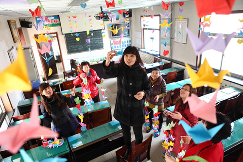 葛亭煤矿女工千只“彩鹤”寄深情 来源:淄矿集团葛亭煤矿 作者:李锋 黄莉娜 时间:2014-03-03 【字体:小 大】 在三八妇女节到来之际,山东能源淄矿集团葛亭煤矿女工委将寄托着全矿女工、家属无限深情的1400余只手工彩纸鹤送到区队,表达她们对干部职工的美好祝福。图为3月2日,女工们在区队学习室里悬挂彩鹤。 分享到: 【打印正文】