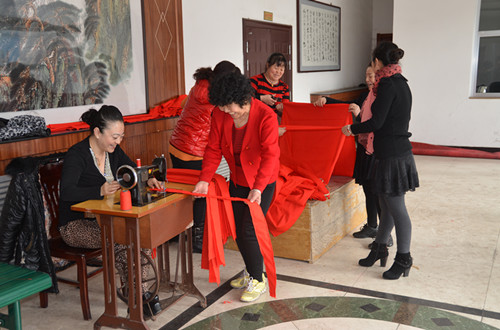 马蹄沟矿家协“三八”节前赶制安全“红腰带”