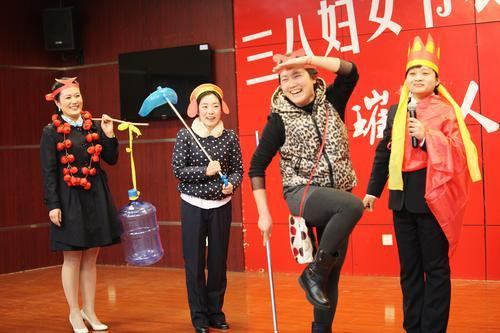 3月6日下午,皖北煤电钱营孜矿女工在表演小品《西游新记》,为节日女工送来快乐。为了让全矿女职工度过一个欢快的节日,矿工会集思广益,精心筹备系列活动,为全矿女工精心准备了丰富的节日大餐,在全矿营造了和谐幸福、奋发进取的浓厚氛围。
