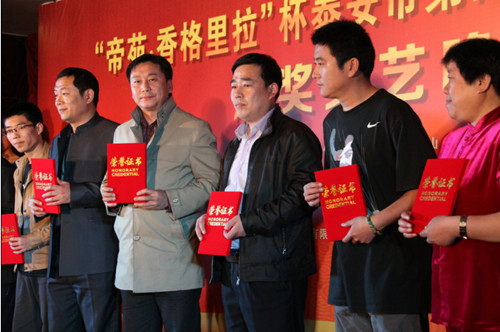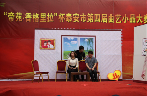 4月24日至27日,山东泰安市帝苑香格里拉杯第四届曲艺小品大赛在泰安帝苑酒店举行。来自全国部分省市的43个曲艺相声小品节目,200余名曲艺爱好者报名参加。大赛特邀全国快板书泰斗张志宽担任评委主委。经过三天的预赛、复赛和决赛,评出了各项奖项。山东能源肥城矿区曲艺协会选送的小品《用心良苦》参加比赛,并荣获三等奖。李莎莎获个人表演一等奖、朱玉东获伯乐奖。