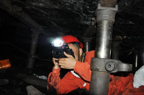 此次拍摄的对象是川煤集团达竹公司小河嘴煤矿采煤一队生产1班。3名记者将镜头对准井下一线煤矿工人,从班前会开始,到打旗入井,采煤工作面设备检修,再到现场生产,进行了全方位、全过程拍摄。图为达州日报记者闫军在小河嘴煤矿井下2018极薄煤层采煤工作面现场拍摄。