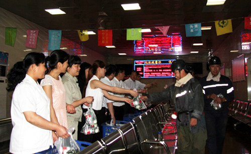 为弘扬传统文化,让坚守在井下的一线职工欢度端午佳节,6月2日上午,山东能源枣矿集团柴里煤矿工会文体中心、女工委组织演职人员和女工协管员到该矿南副井口为上下井的职工送上粽子和鸡蛋。叮嘱职工节日期间安心工作、安全生产。