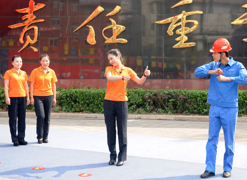6月16日,山西焦煤西山煤电集团杜儿坪矿举行安全文艺演出、职工安全漫画展、安全牌板展,开展安全生产月宣传活动。图为青年职工演出对唱《刘三姐井口嘱安全》。