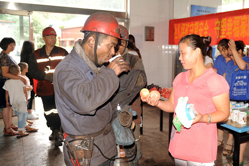 西山煤电杜儿坪矿女工部组织开展接亲人出井活动 来源:西山煤电杜儿坪矿 作者:谢夏雨 时间:2014-08-06 【字体:小 大】 8月5日,山西焦煤西山煤电集团杜儿坪矿工会女工部组织家属开展守望安全守望幸福接亲人出井活动。妻子带着孩子到井口迎接父亲下班出井,感受亲人的艰辛。他们为刚刚出井的亲人递上开水、水果,为他们擦拭脸上的煤尘和汗水。 智能标签: 西山煤电 杜儿坪矿 相关内容 分享到: 【打印正文】