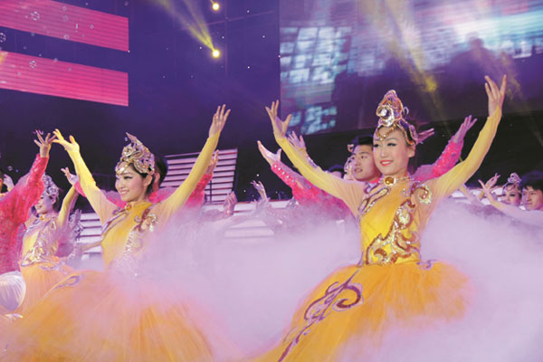 场面震撼,歌声欢快。伴着大型舞蹈《光荣属于你》的优美旋律,文艺晚会圆满落下帷幕。