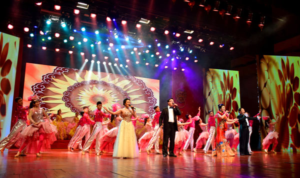 演出结束后,朱立新等集团公司领导走上舞台与演职人员一一握手,祝贺演出成功,并合影留念。