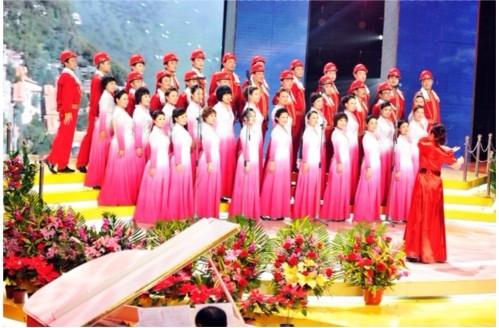 经过两天的走场彩排,23日晚,在群众大舞台,想唱你就来的欢呼声中,主持人白燕升健步上台。男中音歌唱家刘秉义、著名指挥家王瑞璞、国家一级编剧苏柳、青年歌唱演员刘和刚四位嘉宾就座。随后,蔚州公司合唱团与天津滨海新区彩虹教师合唱团和辽宁抚顺石化老年合唱艺术团在中央电视台音乐频道的《歌声与微笑》舞台上共同为全国亿万观众献上一台五·一特别节目。