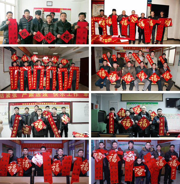 中国煤矿书法家协会积极响应中国书协关于2016年元旦春节期间开展“万名书法家送万‘福’进万家”公益活动的通知精神,认真组织煤炭系统各企业书法组织开展送万‘福’进万家活动。1月31日,由中国煤矿文联主办,中煤平朔集团公司承办的“走基层·送温暖”中国煤矿文联文艺志愿服务走进平朔活动在平朔矿区举行。活动现场气氛热烈,艺术家们挥毫泼墨,为平朔矿区职工写“福”字、写春联,边创作书画作品边和平朔矿区的书画爱好者交流创作经验,笔会交流活动共书写“福”字200多个,春联60多套,创作书法作品50多件、美术作品10多件。艺术家们用饱蘸喜气墨汁的画笔创作出一件件饱含诚意的书画作品,为平朔矿区职工红红火火的生活送上美好的祝愿。