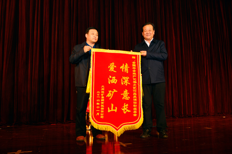 11月16日,张强代表活动组织方接受同煤集团董事长、党委书记张有喜赠送锦旗