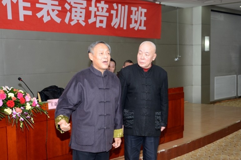 著名相声演员王谦祥、李增瑞为曲艺爱好者即兴表演相声段