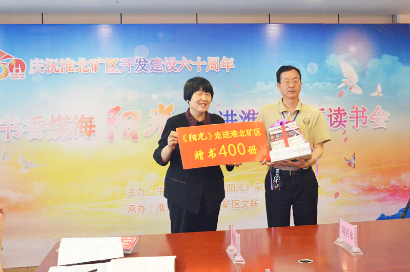 庞崇娅代表《阳光》杂志向淮北矿业集团赠送图书
