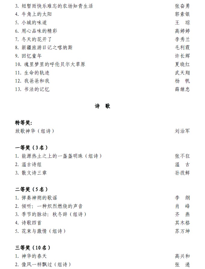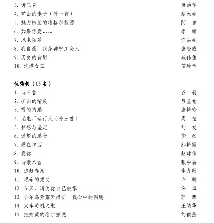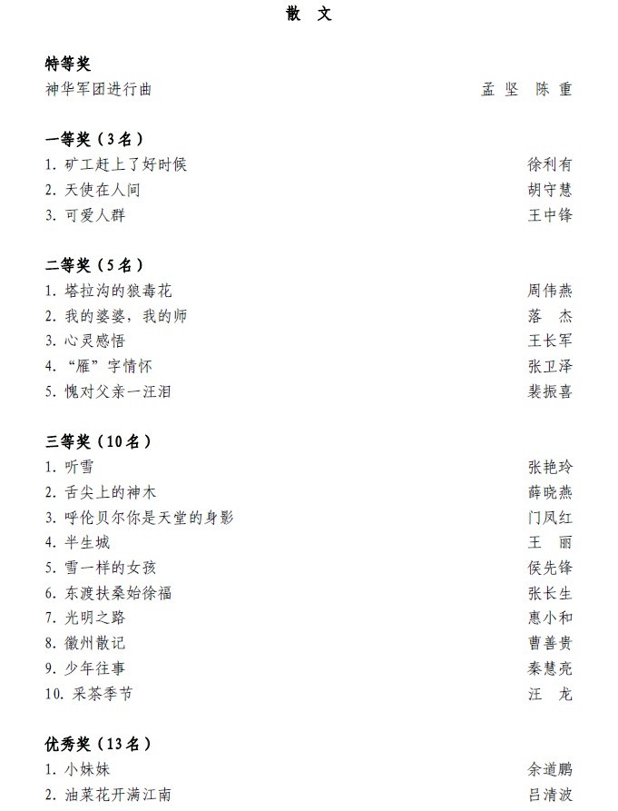 活动历时一年,收到神华职工创作的作品八百多篇,经过有关专家两次评审,本着公平公正公开的原则,共评出特等奖2名,一等奖9名,二等奖15名,三等奖30名,优秀奖30名。