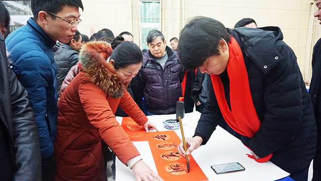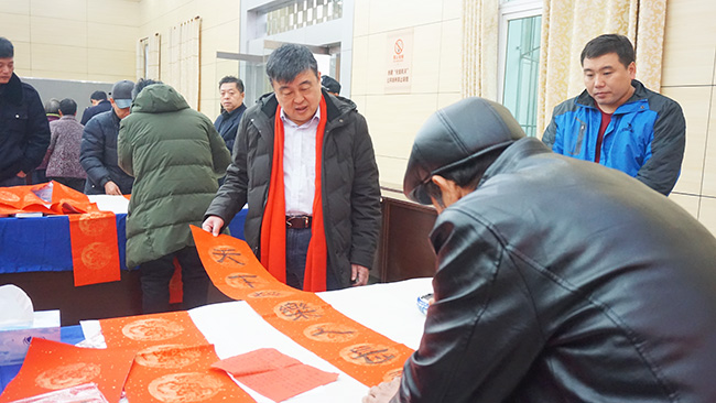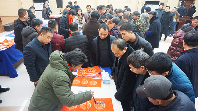 会展中心外冬雨淅沥,却挡不住活动现场热烈祥和的节日气氛。一张张大红的“福”字,一幅幅火红的春联送到矿工的手中,带来了广大书画艺术家对矿工的情意,赢得了矿区人民群众对煤矿文艺工作的认可。很多在现场的煤矿职工表示:“这么多书画艺术家能同时来到丰城矿区一线为我们写春联,我们深受感动和鼓舞,感谢各级领导和艺术家对煤矿工人的关心和关爱。”活动共书写春联520幅,送“福”字200多个。