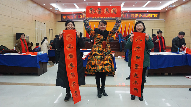 文艺志愿者们为丰城矿区职工书写春联和“福”字
