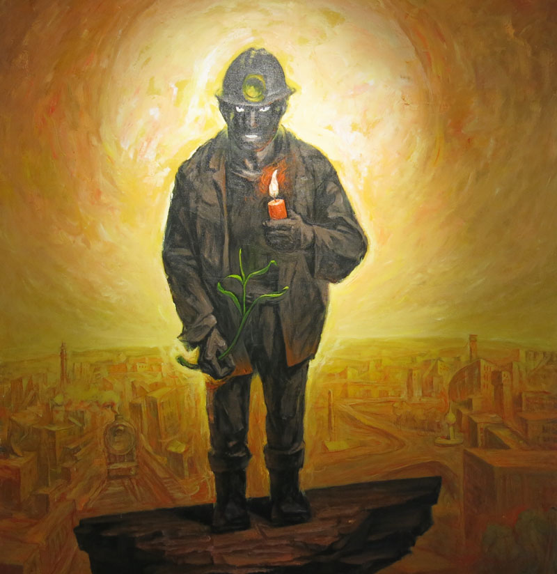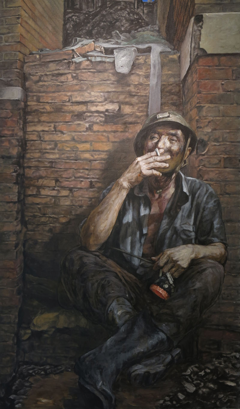 殷阳,自幼生长在煤矿,他曾经当过八年的采煤工人。黑色之光殷阳煤矿艺术展100多件油画作品,是画家作为一名亲历者以一个矿工的身份,怀着对煤矿和矿工的无比深情而创作,他用画笔记录了煤矿的发展和矿工们的生产、生活。殷阳的油画作品,生动刻画了中国煤矿工人们的生活与工作、希望与期盼、追求与爱情,以及因矿难造成的亲人们生离死别的生活体验与场景细节,其作品具有强烈的震撼力和感染力。