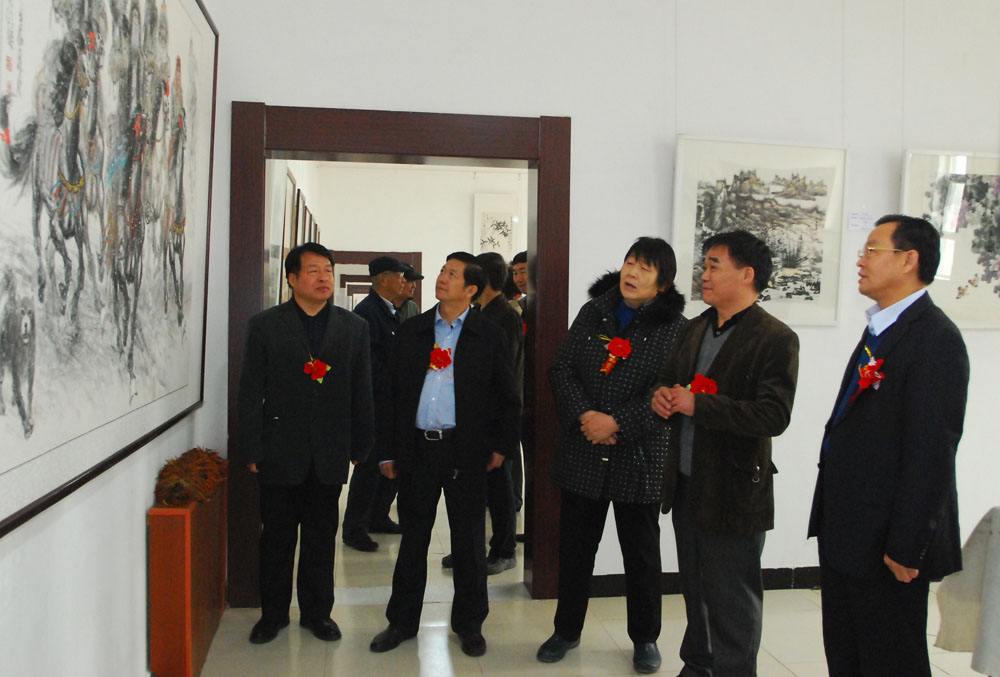 参加揭牌仪式嘉宾参观画院的首届书画作品展览