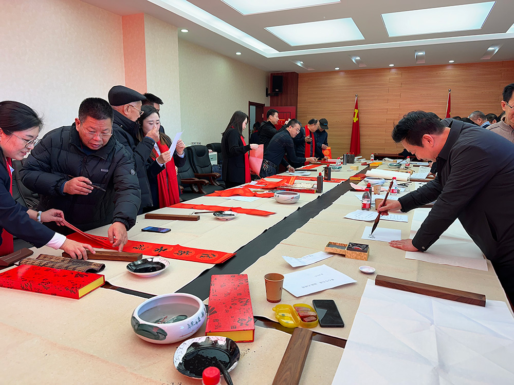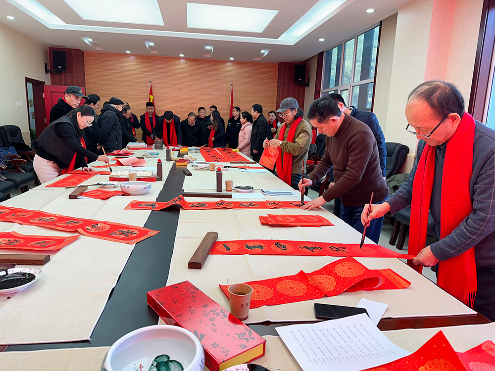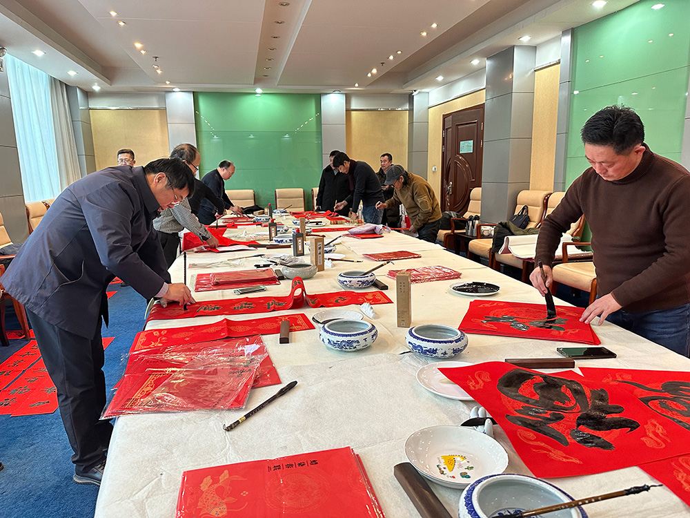 活动现场气氛热烈,书法家们挥毫泼墨、饱含真情,将喜庆和祝福融入一幅幅作品,根据厂矿、井口、巷道、图书馆或家庭客厅、书房等不同位置需求制定不同方案,诗词歌赋,安全、和谐、幸福、美好等主题内容丰富、形式多样,职工群众们都挑选到了各自喜爱的书法作品和春联、“福”字,严寒深山中的矿区装点上了红彤彤的春色。