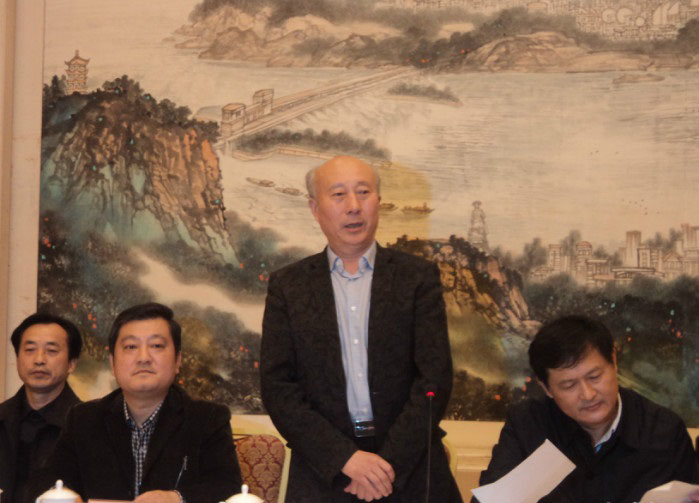 新当选的安徽省书协第五届主席团主席李士杰发表讲话