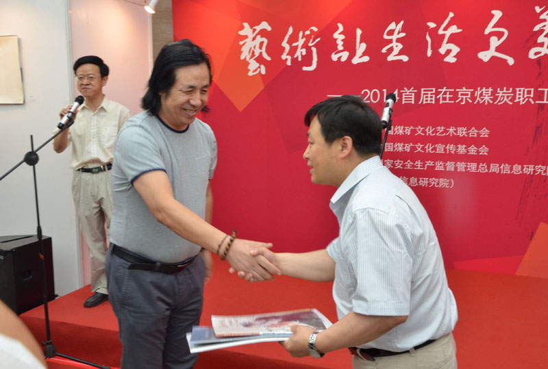 开幕式上,特邀嘉宾首都师范大学教授彭华竞、中国煤矿美协副主席林家保向煤矿文联赠送了个人作品集,并对本次展出的书法、美术作品进行了点评。
