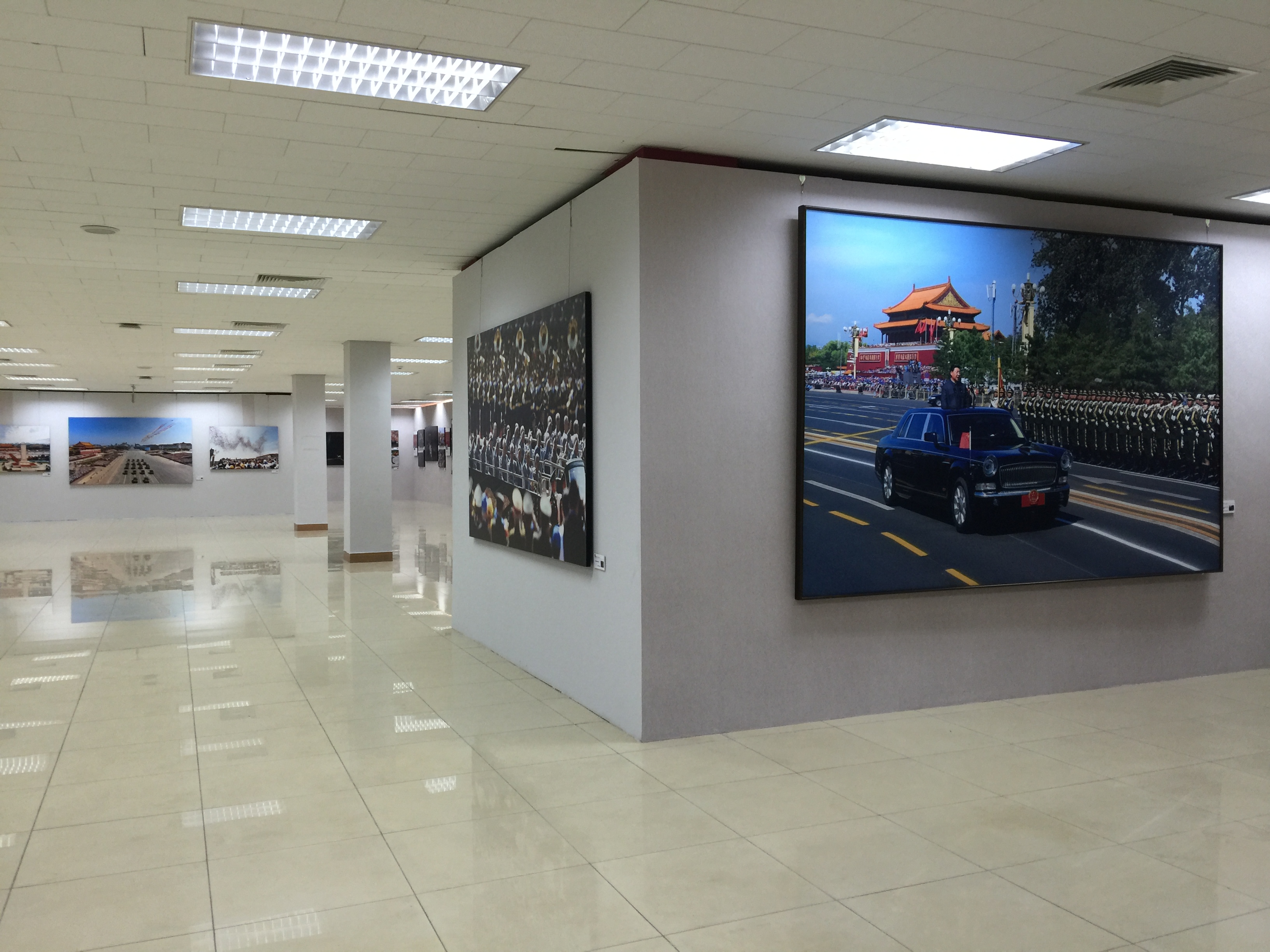 本次展览展出的作品一部分为于文国、王瑶、王杰、刘应华、刘英毅、李舸、金立旺、居杨、原瑞伦、雷声等10位著名摄影家在2014年至2015年期间创作的纪实摄影佳作,既有如记录高铁建设、大漠深处石油勘探、东北老工业基地振兴等重大题材的作品,又有反映科学领域的泰斗,从飞行事业的空军伉俪和“城市蛙人”等多个领域人物工作、生活的真实场景。另一部分为特约新华社、解放军报社近40 位摄影工作者在2015年9 月3 日拍摄的天安门广场盛大阅兵仪式的精彩图片。展览作品力求发挥独特的摄影语言优势,以丰富的影像表达当下全国多个地区、多个领域的人民群众对实现“中国梦”的理解和追求。