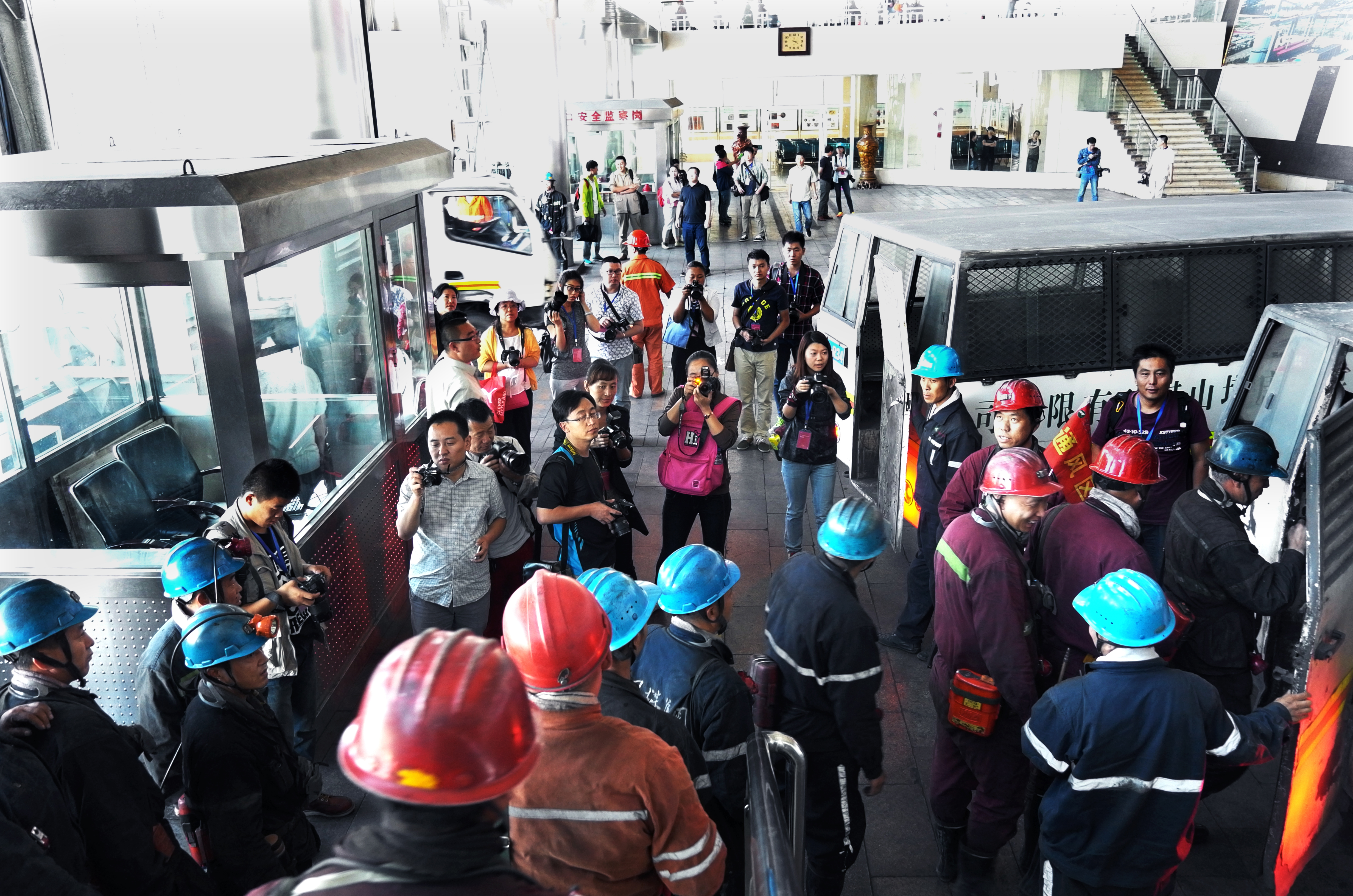 《中国摄影报》副总编辑柴选、中国煤矿摄影家协会副主席兼秘书长高跃冬、《同煤日报》社社长张尚平,与百名来自同煤集团部分厂、矿、分公司宣传部门的基层通讯员和报社部分记者一起,先后到塔山矿井口大厅、运销站装车线、生产车队检修保养车间、机修车间进行摄影采访,感受一线员工的精神风貌。