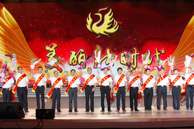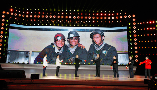 演出期间,著名歌唱家邓玉华和开滦集团工会主席王和贤一起向全国煤炭工业先进集体、劳动模范和感动中国的矿工等先进代表送上了美好的祝福。