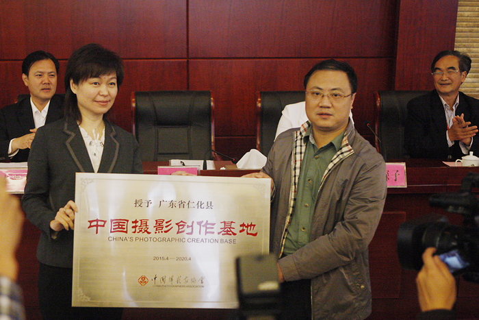王瑶代表中国摄协授予仁化县“中国摄影创作基地”牌匾。
