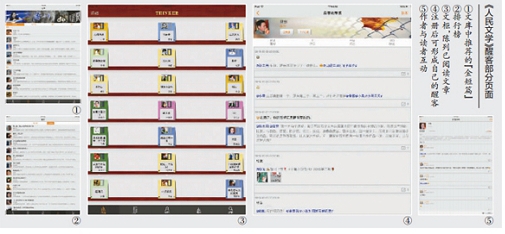 ③文柜,陈列已阅读文章 ④注册后可形成自己的醒客 ⑤作者与读者互动