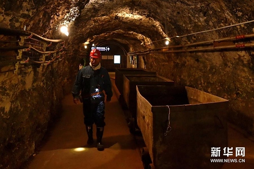 在山西晋华宫国家矿山公园体验井下探秘游(5月16日摄)。新华社记者 曹阳 摄