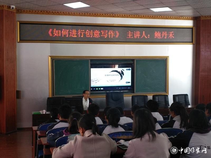 鲍丹禾以《如何写好创意作文》为题进行讲座,鼓励孩子们努力阅读,扩展知识,争取到外面更广阔的世界看看。在与藏族同胞的接触中,他体会到满满的爱以及这片土地上博大精深的文化。