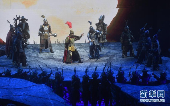 9月30日,演员表演歌剧《玛纳斯》(新华社记者 金良快 /摄)
