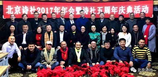 2017年12月17日,北京诗社年会暨诗社成立五周年活动在北京“草原文化部落”召开。会议由北京诗社名誉副社长冰峰主持。参会人员有北京诗社成员40人。
