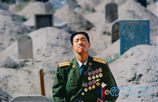 2002年第二十届全国摄影艺术展览《英雄探妻》 (袁学军/摄)这位名叫张良善的人是阿里军分区叶城留守汽车营的干部。他常年驾着军车奔驶在险象环生的高原公路上,一次执行紧急任务时,家中的妻子因病连同未及生下的孩子死去了。8年过去了,他多次怀着悲愤来到妻子的坟前寄托自己的哀思。