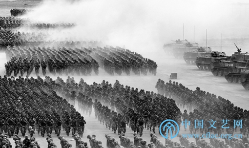2017年第二十六届全国摄影艺术展览《沙场点兵》(范显海/摄)2017年7月30日,庆祝中国人民解放军建军90周年大阅兵在内蒙古朱日和训练基地隆重举行。这是中国人民解放军首次以庆祝建军节为主题的盛大阅兵,是野战化、实战化的沙场点兵。