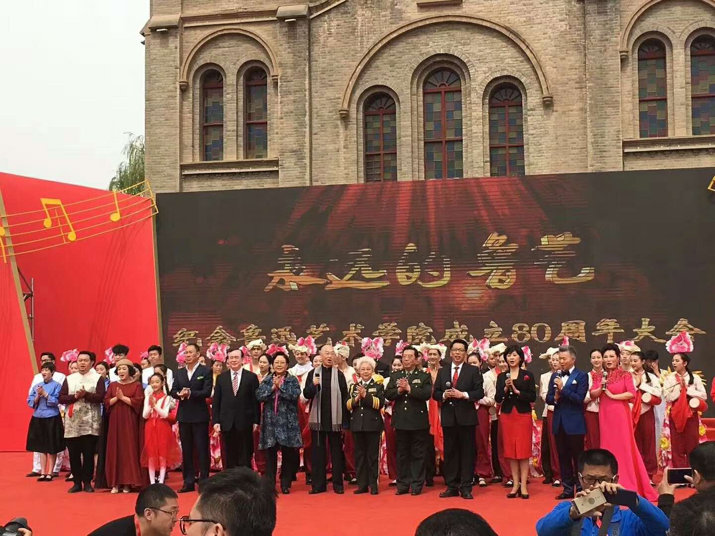 纪念仪式上,鲁艺老校友田华和来自全国知名艺术团体、中央音乐学院、中央美术学院、沈阳音乐学院、中央军委政治工作部歌剧团、中国歌剧舞剧院的乔榛、斯琴高娃、李双江、范迪安、朱琳、王宏伟、吴京安、黄华丽、高保丽、非也、张宏、曲歌、刘倩、李优、沈德鹏等著名艺术家表演了精彩的文艺节目,在中央音乐学院院长俞峰指挥《黄河大合唱》第七乐章《保卫黄河》时,伴随着著名钢琴演奏家谭小棠激昂的钢琴伴奏,中央美术学院院长范迪安即兴挥毫书写《保卫黄河》多声部合唱词。